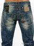 Детали: застежка на пуговицах, отрезной пояс со шлевками для ремня, сильный эффект потертости