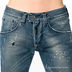 Стильные джинсы, слегка зауженные к низу. Пять карманов, искусственные затертости и помятости.