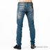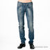Стильные джинсы, слегка зауженные к низу. Пять карманов, искусственные затертости и помятости.