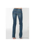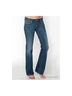 Классические пятикарманные джинсы с заниженной талией. Модель декорирована эффектом потертости и перманентными складками. На задних карманах контрастная небольшая вышивка. Материал модели содержит небольшое количество эластана.