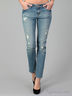 Замечательные джинсы с застежкой на молнию и пуговицу спереди. Модель прямого кроя дополнена втачными карманами по бокам и накладными - сзади. На поясе присутствуют шлевки для ремня. Отличный вариант на каждый день.