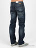 Классические мужские джинсы из плотного, неэластичного хлопкового денима. Отрезной пояс со шлевками для ремня. Застежка на пуговицу и на молнию. Спереди три прорезных кармана, сзади - четыре накладных. Длинные прямые брючины декорированы декоративными потертостями. Универсальная модель, прекрасно будет сочетаться с разными по фасону и фактуре вещами!