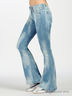 Пятикарманные джинсы из мягкого денима, клеш от колена. Застегиваются на молнию и пуговицу. Треугольная кокетка сзади. Выполнены из "вареной" джинсы.