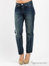 Стильные джинсы из плотного, мягкого хлопкового денима. Отрезной пояс со шлевками для ремня. Застежка на пуговицу и молнию. Спереди два прорезных кармана и один накладной, сзади два накладных кармана. Длинные зауженные брючины. Джинсы декорированы контрастным швом и потертостями.