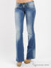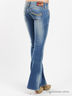 Стильные джинсы из плотного, приятного на ощупь полухлопкового денима. Отрезной пояс со шлевками для ремня. Застежка на пуговицы и молнию. Спереди два прорезных кармана и один накладной, сзади два накладных кармана. Длинные расклешенные от колена брючины. Джинсы декорированы контрастными швами.