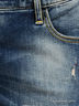 Классические джинсы из мягкого, плотного хлопкового денима. Отрезной пояс со шлевками для ремня. Застежка на пуговицу и молнию. Спереди два прорезных кармана и один накладной, сзади два накладных кармана. Длинные зауженные брючины. декорированы потертостями и цветным крапинками.