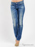 Отличные джинсы из плотного, мягкого хлопкового денима. Отрезной пояс со шлевками для ремня. Застежка на пуговицу и молнию. Спереди два прорезных кармана и один накладной, сзади два накладных кармана. Длинные слегка зауженные брючины. Джинсы декорированы потертостями.