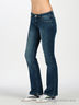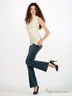 Классические пятикарманные джинсы расклешенного покроя. Застегиваются на молнию и пуговицу. Треугольная кокетка сзади.