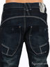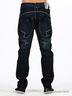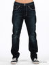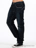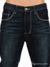Стильные синие джинсы слегка зауженные к низу. Отрезнйо пояс, есть шлевки для ремня. Пять больших карманов. Застегиваются на молнию и пуговицы. Декорированы контрастной прострочкой.