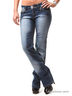 Джинсы выполнены из плотного денима с небольшим содержанием эластана. Пояс дополнен шлевками для ремня. Изделие оформлено легким эффектом потертости, стыки швов на карманах проклепаны. Отличный вариант для повседневного гардероба.