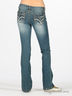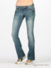 Джинсы-клеш. Классический крой с пятью карманами. Задние карманы с клапанами на пуговицах. Отрезной пояс со шлевками для ремня. Декорированы яркой прострочкой.