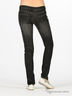 Джинсы зауженные к низу. Отрезной пояс со шлевками. Застегиваются на молнию и пуговицу. Крой пятикарманный. Изделие декорировано стразами. Контрастная прострочка.