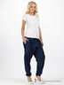 В стильных джинсах с низким шагом вы будете чувствовать себя комфортно как на прогулке, так и на вечеринке. Неэластичная ткань. Пояс на резинке с тонким пояском. Спереди два врезных кармана. Сзади два накладных кармана. Низ брючин на резинке.