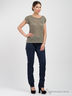 Джинсы зауженного покроя с застежкой на молнию и пуговицу. Спереди два втачных кармана, сзади два накладных. Отличный вариант на каждый день.