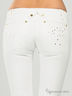 Модные джинсы прямого покроя, с застежкой на молнию и пуговицу. Спереди и сзади по два втачных кармана. На поясе шлевки для ремня. Сзади изделие декорировано стразами. В изделии будет комфортно за счет свойств, которыми обладает хлопковая ткань: мягкость, хорошая поглощающая способность в теплое время. Также преимуществом хлопка является его натуральность и гипоаллергенность.