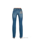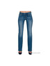 Практичные джинсы прямого кроя с застежкой на молнию и пуговицу. Модель дополнена пятикарманным кроем и украшена тертым эффектом и контрастной фигурной прострочкой на задних карманах. На поясе предусмотрены шлевки для ремня.