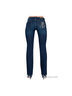 Практичные джинсы из темного денима с перманентными складками. Классический пятикарманный покрой. Эта модель украшена контрастной отстрочкой. На поясе есть шлевки для ремня. Задние накладные карманы декорированы интересным узором-вышивкой.