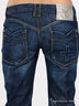 Классические пятикарманные джинсы прямого покроя оригинального ярко-синего цвета. Отрезной пояс, есть шлевки для ремня. Застегиваются на молнию и пуговицу. Сзади треугольная кокетка. Декорированы контрастной прострочкой и черными вставками из денима у передних карманов.