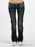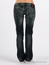 Классические пятикарманные джинсы прямого покроя оригинального сине-серого цвета, с зеленым оттенком. Отрезной пояс, есть шлевки для ремня. Застегиваются на молнию и пуговицу. Сзади закругленная треугольная кокетка, прекрасно подчеркивающая бедра. Декорированы контрастной прострочкой с легким эффектом потертости и кожаными вставками на карманах.