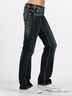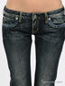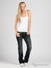 Классические пятикарманные джинсы прямого покроя оригинального сине-серого цвета, с зеленым оттенком. Отрезной пояс, есть шлевки для ремня. Застегиваются на молнию и пуговицу. Сзади закругленная треугольная кокетка, прекрасно подчеркивающая бедра. Декорированы контрастной прострочкой с легким эффектом потертости и кожаными вставками на карманах.