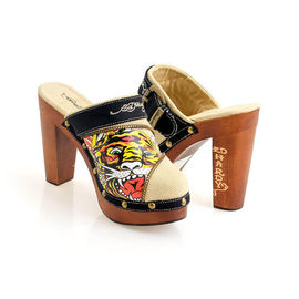 Сабо Ed Hardy женское, цвет коричневый / бежевый