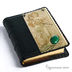 Кожаный ежедневник ручной работы. Рисунок - тиснение по коже, золотой обрез. Инкрустирован камнем "малахит".