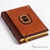 Кожаный ежедневник ручной работы. Недатированный, золотой обрез. Инкрустирован камнем "Тигровый глаз"