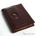 Кожаный ежедневник ручной работы. Недатированный, золотой обрез, по краям прошит кожаной нитью. Инкрустирован камнем