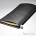 Ежедневник ручной работы из кожи средней плотности черного цвета.