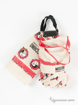 Зонт складной Moschino "mini" женский, цвет молочный / красный