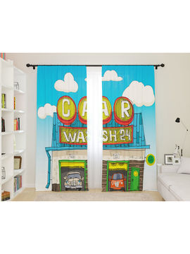 Фотошторы для детской "Веселая автомойка", 145*260, 2 шт. Сирень, цвет мультиколор