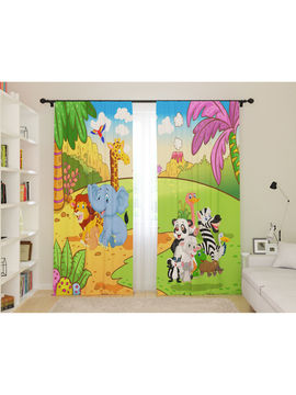 Фотошторы для детской "Животные в тропиках", 145*260, 2 шт. Сирень, цвет мультиколор