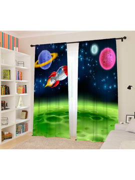 Фотошторы для детской "Космос из далека", 145*260, 2 шт. Сирень, цвет мультиколор