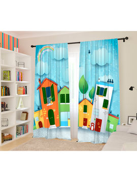 Фотошторы для детской "Домики", 145*260, 2 шт. Сирень, цвет мультиколор