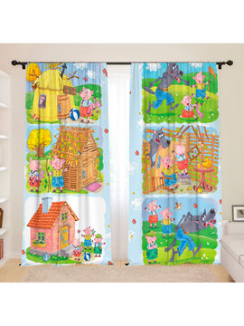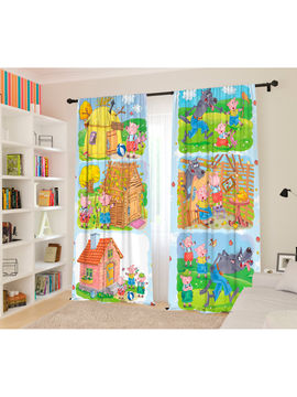 Фотошторы для детской "Сказка про поросят", 145*260, 2 шт. Сирень, цвет мультиколор