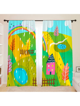 Фотошторы для детской "Домик в лесу", 145*260, 2 шт. Сирень, цвет мультиколор