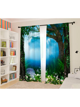 Фотошторы для детской "Соловушка в лесу", 145*260, 2 шт. Сирень, цвет мультиколор