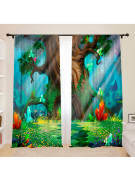 Фотошторы для детской "Тайна в сказочном лесу", 145*260, 2 шт. Сирень, цвет мультиколор