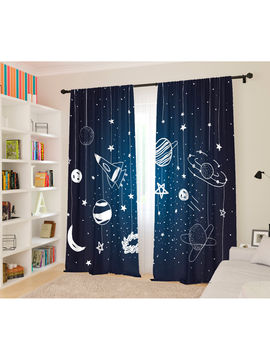 Фотошторы для детской "Синий космос", 145*260, 2 шт. Сирень, цвет синий