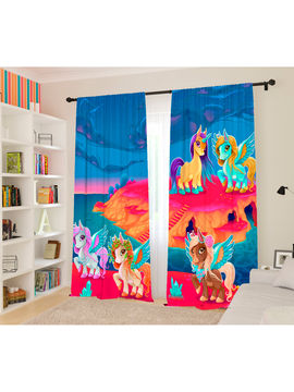 Фотошторы для детской "Остров прекрасных пони", 145*260, 2 шт. Сирень, цвет мультиколор