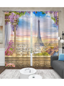 Фотошторы "Романтика Эйфелевой башни", 145*260 см, 2 шт. Сирень, цвет мультиколор