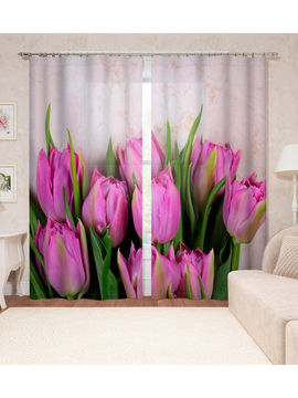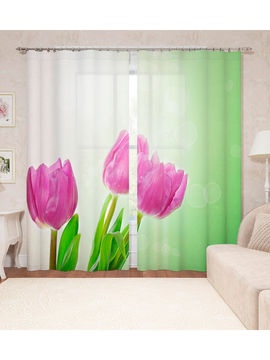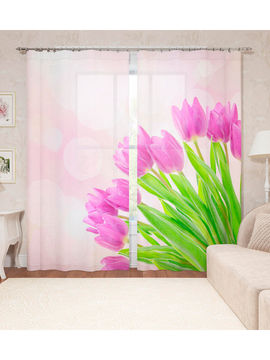 Фотошторы "Розовые тюльпаны", 145*260 см, 2 шт. Сирень, цвет мультиколор