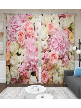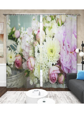 Фотошторы "Розы и гортензии", 145*260 см, 2 шт. Сирень, цвет мультиколор