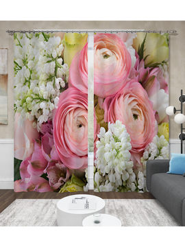 Фотошторы "Розовые цветы", 145*260 см - 2 шт Сирень, цвет розовый