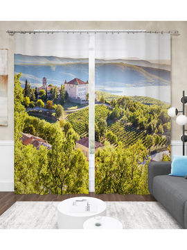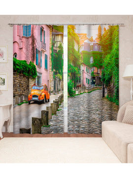 Фотошторы "Деревня Эгюин", 145*260 см, 2 шт. Сирень, цвет мультиколор