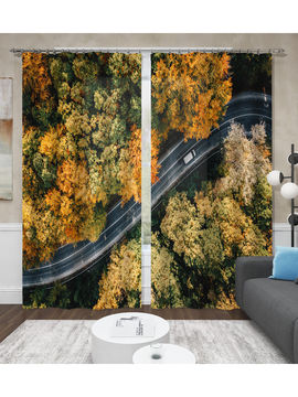 Фотошторы "Осенний путь", 145*260 см, 2 шт. Сирень, цвет мультиколор