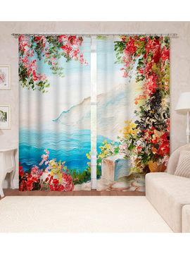 Фотошторы "Райский уголок", 145*260 см - 2 шт Сирень, цвет голубой
