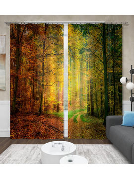 Фотошторы "Осенний лес", 145*260 см, 2 шт. Сирень, цвет мультиколор
