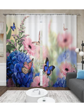 Фотошторы "Цветы и бабочки", 145*260 см, 2 шт. Сирень, цвет мультиколор