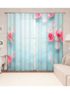Фотошторы "Капли воды на розах", 145*260 см, 2 шт. Сирень, цвет голубой